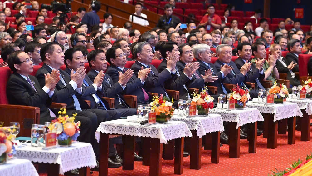 Tham dự buổi lễ có đồng chí Tô Lâm, Tổng Bí thư Ban chấp hành Trung ương Đảng Cộng sản Việt Nam; các đồng chí Ủy viên Bộ Chính trị: đồng chí Lương Cường, Chủ tịch nước; đồng chí Phạm Minh Chính, Thủ tướng Chính phủ; đồng chí Trần Thanh Mẫn, Chủ tịch Quốc hội; đồng chí Trần Cẩm Tú, Thường trực Ban Bí thư; đồng chí Đỗ Văn Chiến, Bí thư Trung ương Đảng, Chủ tịch Ủy ban Trung ương MTTQ Việt Nam; các đồng chí Ủy viên Bộ Chính trị, Bí thư Trung ương Đảng, các đồng chí Ủy viên Ban Chấp hành Trung ương Đảng, các đồng chí đại diện Lãnh đạo các ban, bộ, ngành, cơ quan, đoàn thể Trung ương, các đồng chí Lãnh đạo các địa phương dự tại các điểm cầu, các vị đại sứ, đại diện các nước, các tổ chức quốc tế tại Việt Nam